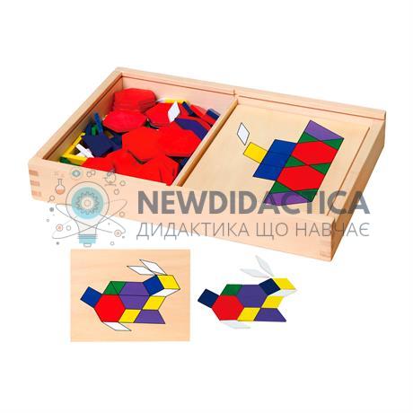 Геометрична мозаїка дерев'яна з шаблонами містить 120 яскравих блоків геометричних форм і 10 шаблонів із прикладами композицій для викладання. Навчальна гра призначена для дітей від 3 років дошкільного віку. Діти будуть підбирати, сортувати за кольором і формою, збирати дерев'яні блоки в мозаїку. Вони зможуть скласти мозаїчні зображення метелика, кролика, кораблика, рибки, квітки та інші за шаблонами. Або пофантазувати і самостійно придумати композиції. Такі заняття добре тренують зорово-моторну координацію, навички конструювання, логічне та образне мислення, творчу уява. Діти познайомляться з геометричними фігурами, запам'ятають основні кольори. Граючи з навчальною мозаїкою, малюки стануть більш уважними і зосередженими. Набір для навчання у вигляді геометричної мозаїки добре підходить для методик Нікітіних і Монтессорі. Рекомендований для занять удома, у дитячому садку, центрах розвитку. Можна грати самостійно і в групі. Дитяча мозаїка упакована в нефарбований дерев'яний ящик розмірами 33 х 23 х 5 см з прозорою пластиковою кришкою. У комплекті 10 дощечок із прикладами композицій із блоків. Розвивальний дерев'яний набір відповідає стандартам безпеки та якості дитячих іграшок EN71, ASTM.