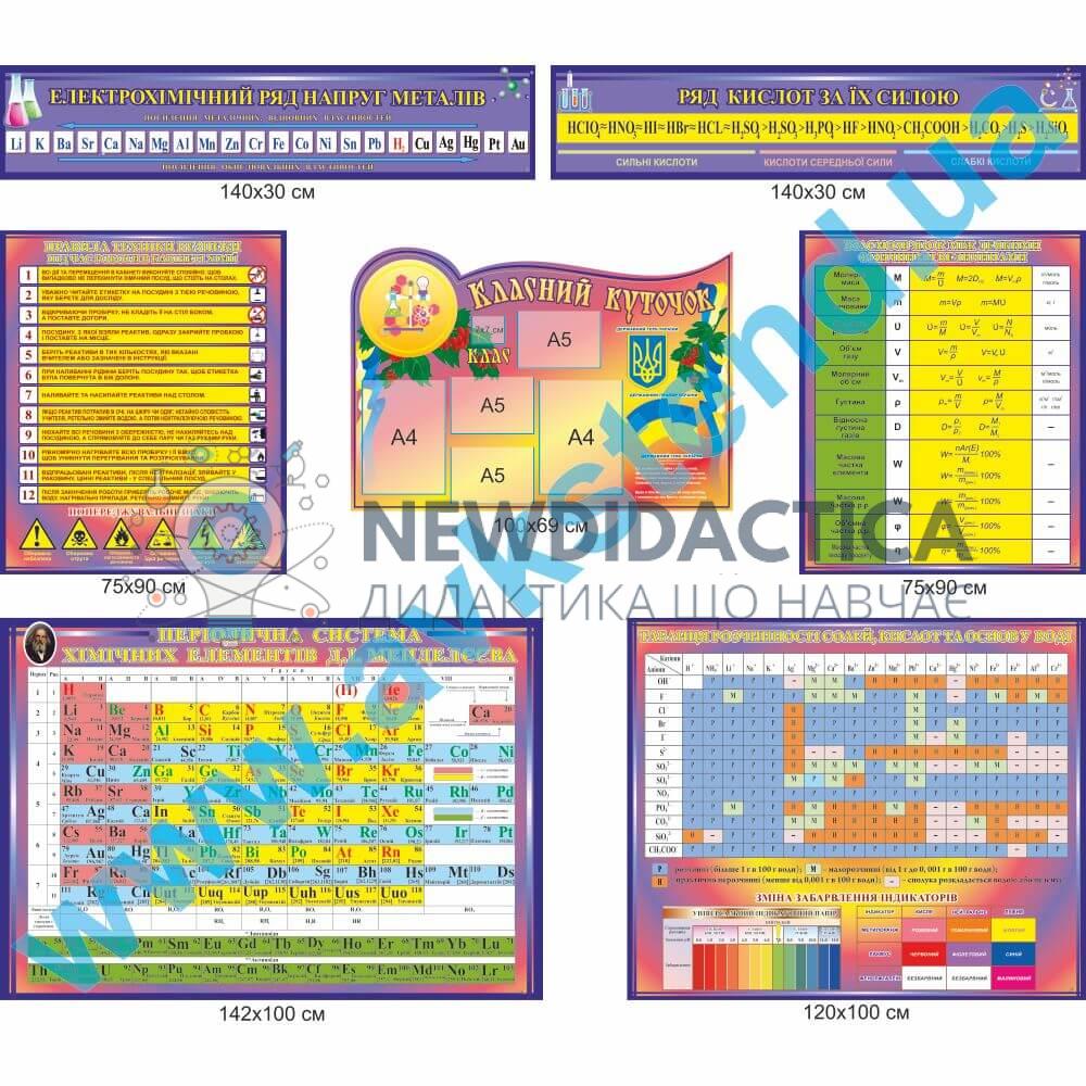 - Стенд “Таблиця розчинності солей, кислот та основ у воді”