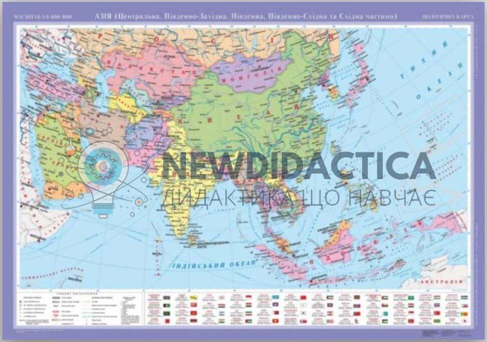 Азія (Центральна, Південно-Західна, Південна, Південно-Східна та Східна частини). Політична карта