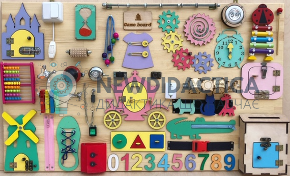 Бізіборд стане доповненням дитячих ігрових меблів вдома, садочку, інклюзивного центру та молодшій школі. За його допомоги можна забезпечити необхідний розвиток дитині поза навчальним закладом. Він тренує увагу та сприйняття кольорів, виховує точність та логіку.