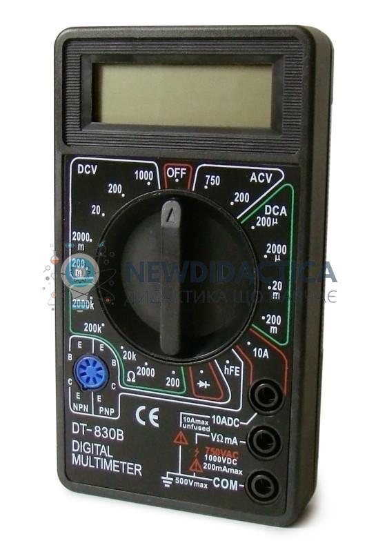 Використовується цифровий вимірювальний прилад (мультиметр) в закладах освіти під час проведення лабораторних дослідів з електрики для контролю постійної і змінної напруги, постійного струму, опору, перевірки діодів тощо.Діапазони вимірювання DCV: 200 mВ; 2000 mВ; 20 В; 200 В; 1000 В;Дапазони вимірювання ACV : 200 В; 750 В;Діапазони вимірювання DCA: 200 µA; 2000µA; 20 mA; 200 mA; 10 AДіапазони вимірювання опору: 200 Oм; 2000 Oм; 20kOм; 200 kOм; 2000 kOм. Габаритні розміри 70х130х24 мм. Вага: 0,13 кг.