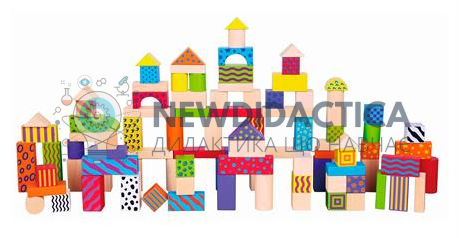 Головна особливість комплекту в його кольоровій гамі. Яскраві та ефектні блоки з дерева гарантують дітям цікаву гру. Комплект містить куби, паралелепіпеди, циліндри та пірамідки. Товщина всіх деталей 3 см. З їхньою допомогою діти тренують просторове та логічне мислення, будівельні навички, вчаться розпізнавати предмети за формою та розміром, сортувати їх.