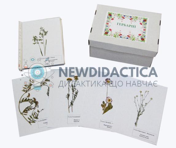 Категорія згідно переліку МОН: демонстраційне обладнання.Призначення: для використання в загальноосвітніх навчальних закладах на уроках біології та природознавства як демонстраційного обладнання при вивчені відповідних тем.Опис: гербарні зразки висушені, прикріплені до гербарних листів формату А4. Кожен гербарний лист супроводжується інформацією про родинну та видову назви. Містить натуральні зразки частин рослин. Кількість - не менше 10 гербарних зразків.