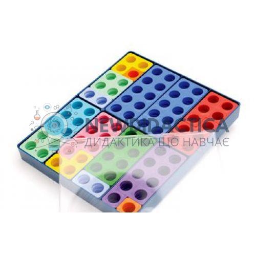 Комплект пластин у коробці, 80 шт (кольорові або сірі) для занять з дітьми віком 5-7 років. В наборі арифметичних форм – по 10 пластин одиничок, двійок, трійок, четвірок, десяток та по 5 пластин шісток, сімірок, вісімок та дев’яток. Розмір коробки: 26,5*22*3, вага: 1,2 кг.