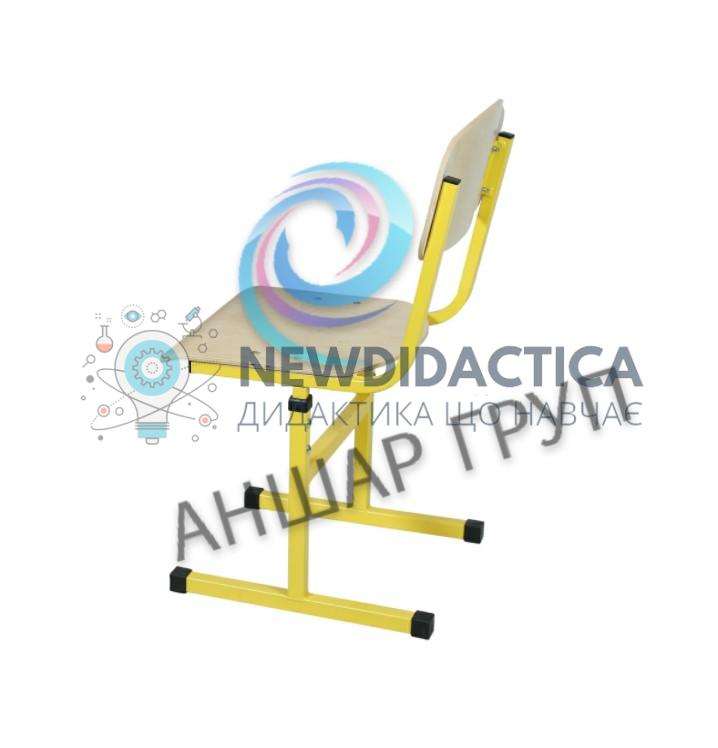 Стілець складається із накладного сидіння, спинки та металевого каркасу. В місцях регулювання висоти встановлена перехідна внутрішня поліуретанова втулка, що забезпечує плавність регулювання, усуває скрипіння та подряпини при регулюванні висоти, надає ергономічний сучасний вигляд. Сидіння та спинка стільця виготовлено з фанери товщиною не менше 8 мм. Покриваються сидіння та спинки прозорим лаком на водній основі. До каркасу стільця приварені металеві пластини-вушка до яких кріпляться спинка та сидіння. Такий тип з’єднання дозволяє легко здійснювати монтаж/демонтаж спинок та сидінь, при необхідності проводити заміну в майбутньому. Кріплення спинок та сидінь до каркасу учнівських стільців здійснюються за допомогою болтів спеціальної грибоподібної форми та гайок заокругленої форми, що убезпечує від отримання травм та від пошкодження одягу. Кути сидіння та спинки мають радіус заокруглення для запобігання травмування.