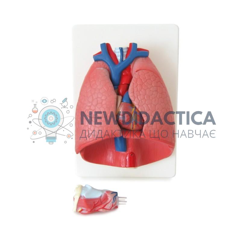 Використовується модель «Легені людини» в кабінеті біології загальноосвітнього навчального закладу під час вивчення розділу «Людина», теми «Дихальна система». Модель є розбірною, демонструє будову легень людини: бронхіальне дерево, бронхіоли i альвеоли, легеневі артерії, легеневі вени, нерви і лімфатичні судини, легеневу плевру. Виготовлена з пластика, забарвлена в яскраві природні кольори та розміщена на пленшеті-підставці. Розміри моделі 31x41x12 см.