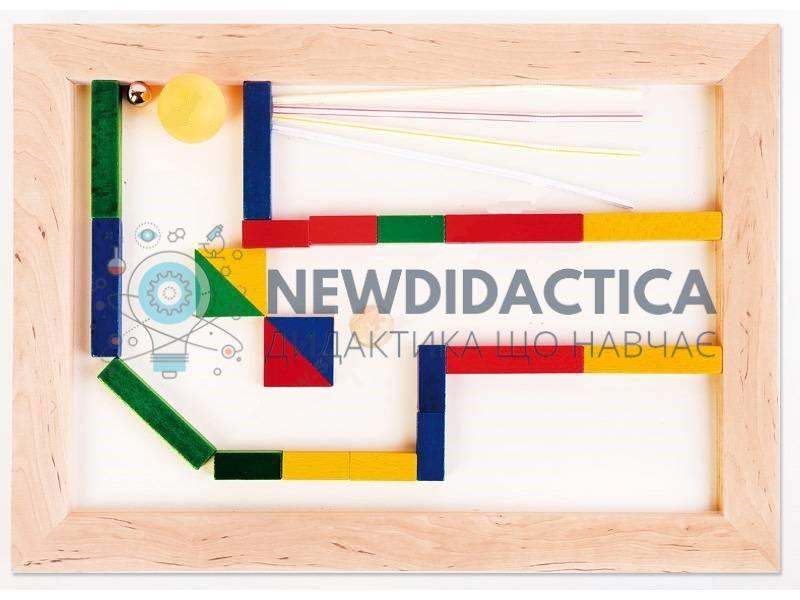 Велика магнітна дошка з дерев’яним каркасом, на якій можуть розміщуватися у довільному порядку дерев’яні фігури з магнітною стрічкою на них. Будь- яка композиція блоків створює шлях, по якому один із 3-х запропонованих м'ячів (металевий, дерев'яний та для настільного тенісу) буде рухатися завдяки повітрю видутому з легень.