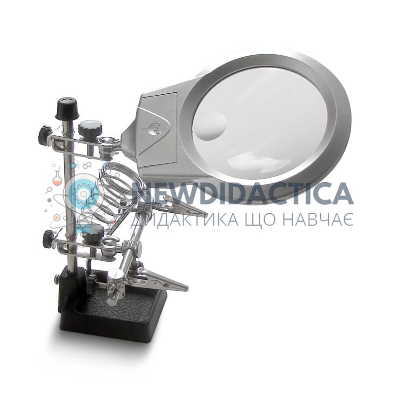 Використовується лупа штативна в кабінеті біології загальноосвітнього навчального закладу під час проведення демонстраційних дослідів. Лупа призначена для спостереження невеликих об’єктів, деталі яких не можливо роздивитися не озброєним оком. Лупа є збільшувальною скляною лінзою в оправі на підставці. Збільшення до 5х.