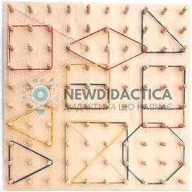 Математичний планшет(геоборд) – дуже простенька, але цікава іграшка, що ніколи не набридне. Вона розвиває математичне мишлення, пам’ять, мілку моторику, уяву, сприяє психосенсомоторному розвитку. На планшеті знаходиться 100 вертикальних стовпчиків, на однаковій відстані один від одного. Стовпчики міцно зафіксовані в пазах декількома ступенями захисту, це виключає можливість їх випадання. За допомогою 20 -ти канцелярських різинок, що входять до комплекту, дитина зможе складати різні геометричні фігури, цифри, силуети звірів, людей, механізми та будівлі. В процесі гри з геобордом дитина засвоює такі поняття, як розмір, форма, симетрія, вчиться писати своє ім’я, чи прості слова. Розмір іграшки 30х30 см. Матеріал – якісна деревина та кольорові, міцні канцелярські гумки. Комплектується схемою зі зразками можливих фігур.