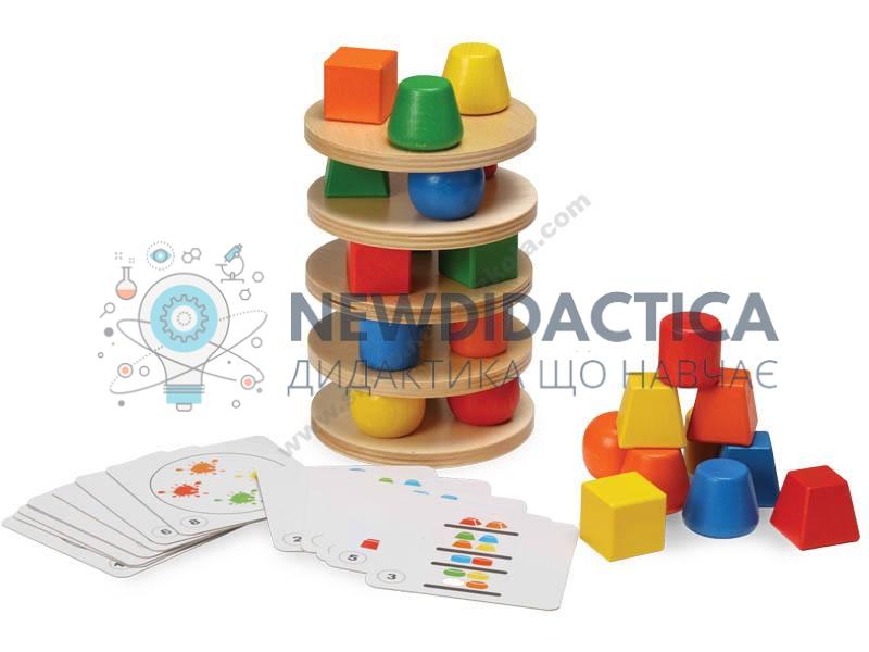 Піраміда фігур. Дерев'яна вежа з блоками та робочими картками