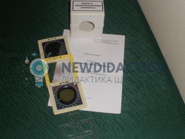 Використовується «Поляризаційний калейдоскоп» в кабінеті фізики загальноосвітнього навчального закладу. Прилад виготовлений у вигляді іграшки, під час створення якої в основу покладено явище поляризації світла. Максимально просте вирішення конструкції посібника надає можливість учням не лише спостерігати калейдоскопічні картинки на анізотропному целофані, але і виконувати серйозну роботу: досліджувати стан поляризації світла різних джерел випромінювання, вимірювати обертання площини поляризації за допомогою оптично активних розчинів (цукру), постерігати на демонстраційних елементах прояв штучної оптичної анізотропії. Габаритні розміри: 51х76х78 мм. Вага: 0,15 кг.