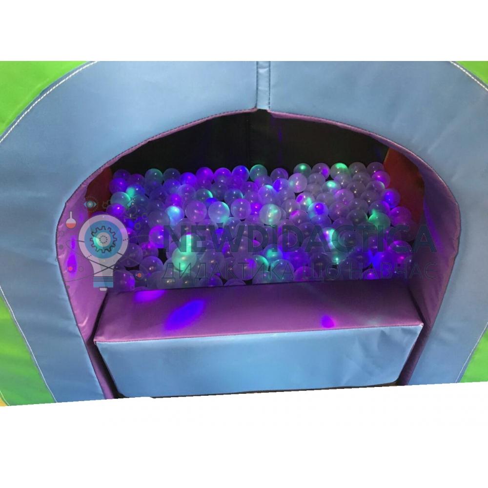 Опис: являє собою арочну конструкцію, виготовлену за типом печери або палатки з розміщеними всередині блоками-лавочками для сидіння, відпочинку, ігор дітей. У верхню частину корпусу вмонтовано світлодіодне освітлення, яке застосовується до світлотерапії. Всередину печери засипаються кульки для тактильної терапії. Можна використовувати так само в розібраному вигляді.