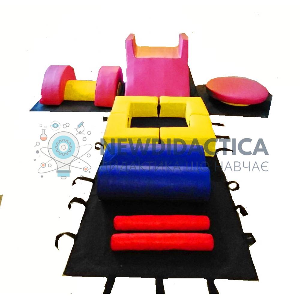 Опис: являє собою м'який спортивно-ігровий тренажер для активного фізичного розвитку дитини (балансування, перекиди, перевороти, повзання, стрибки та ін.). Призначений для колективних спортивних змагань, тренувань, навчальних програм фізичного розвитку. Безпечний для користування. Виріб є як окремої ігрової частиною, так і легко поєднується з іншими модульними конструкціями.