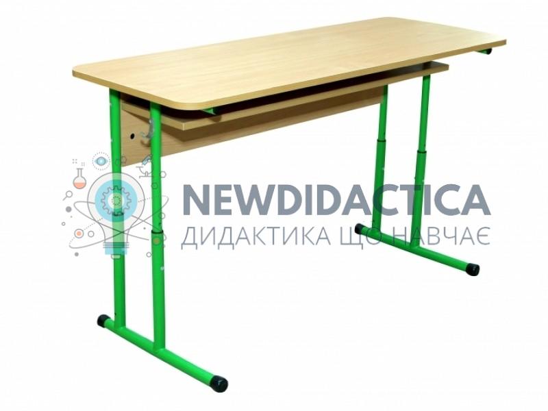 Стіл учнівський 2-місний з полицею, регулюється на ростові групи № 4-7 (без нижньої перемички).
