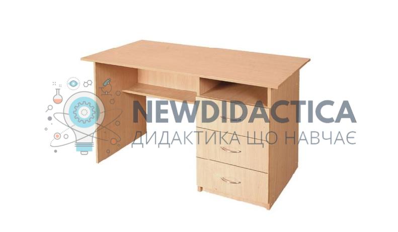 Виготовлено із ДСП ламінованої 18 мм; дно шухляд - ДВП ламінована біла 3 мм. Фасади шухляд, стільниця - ПВХ 1мм. Стійки, екран, полиця - ПВХ 0,5 мм. Фурнітура: єврогвинти, ручки меблеві хромовані, мініфікси, роликові направляючі.