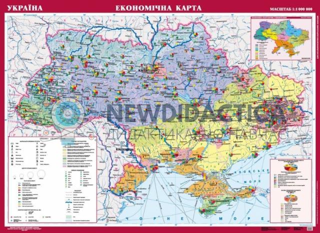 Опис товару: Велика економічна карта України — географія в НУШ Економічна карта України допоможе на наочному прикладі ознайомити учнів з основними галузями української промисловості, мінерально-сировинними ресурсами, особливостями різних економіко-географічних районів тощо. Карта містить лише актуальну інформацію, адже її було укладено спеціально для вивчення шкільного курсу географії з використанням статистичних даних, шкільних підручників та атласів. Основні характеристики Перш ніж придбати шкільну настінну карту України, зверніть увагу на такі особливості: Масштаб — 1:1 000 000. Розмір карти — 148х107 см. Відповідає вимогам МОН і концепції НУШ.