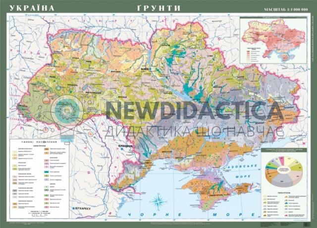 Опис товару: Настінна карта ґрунтів України — географія в НУШ Якісна карта видів ґрунтів України на планках — практичний наочний засіб для сучасних уроків географії. Особливості карти ґрунтів Серед особливостей карти, які особливо відзначають вчителі: цупкий ламінований папір; яскраві, стійкі кольори; пластикові планки для зручності використання; великий розмір 148х107 см.