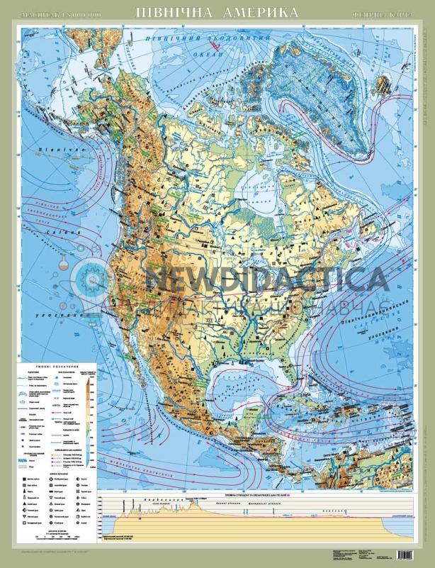Опис товару: Карта Північної Америки на планках для шкільного кабінету Неможливо уявити сучасний кабінет географії в загальноосвітній школі без карт. Великі та яскраві — з ними кожен урок стає зрозумілим та повноцінним, а подача матеріалу — якісною і доступною. Використання карти Північної Америки на шкільному уроці географії За допомогою фізичної карти учитель наочно може показати дітям: материк — його вершини, низовини, гори та рівнини; моря, океани, течії, що омивають його, а також річки та озера, які розташовані на ньому; миси, острови; корисні копалини та ін. Використання деталізованих високоякісних карт значно підвищить рівень зацікавленості в предметі, а також рівень знань і практичних навичок роботи з картами серед учнів.