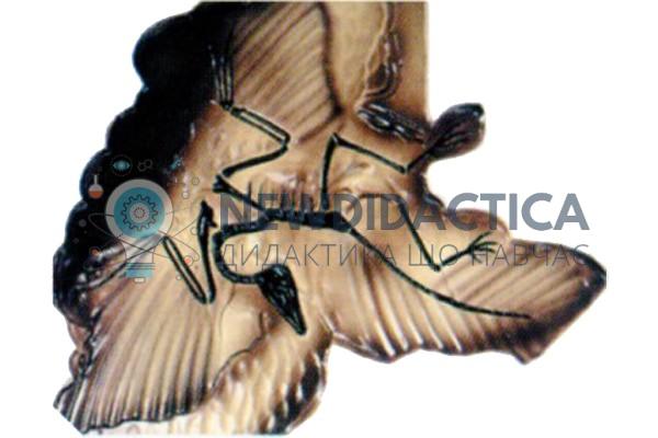 Використовується барельєфна модель «Археоптерікс» в кабінеті біології загальноосвітнього навчального закладу під час вивчення розділу «Загальна біологія». Модель демонструє скам’янілого доісторичного перво птаха - Археоптерикса. Виготовлена з листового термопластика з глибиною рельєфу до 3 см. Зображення забарвлено в природні кольори. Розміри моделі 60x40 см.