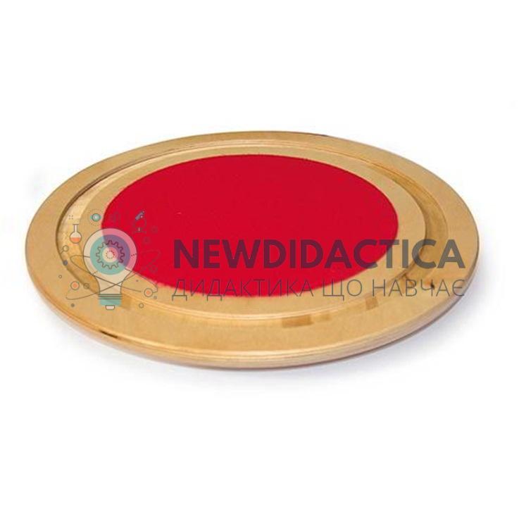 Балансир для розвитку координації, формування правильної постави. Ця допоміжне обладнання стимулює дитину до фізичних вправ, та концентрує її увагу. Дитина повинна розташувати ноги з боків дошки і контролювати рух кульок, які котяться в канавках. Дерев'яна платформа з колісно-дисковим діаметром. 50 см