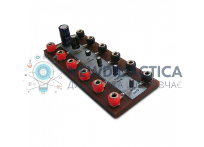 Використовується під час проведення демонстраційних та лабораторних дослідів з електрики, щодо вивчення будови і принципу дії конденсаторів постійної ємності. Ємністі конденсаторів:4,7 мкФ10 мкФ47 мкФ470 мкФ1000 мкФ4700 мкФ.Габаритні розміри батареї конденсаторів: 21х7х7 см, вага 0,2 кг.