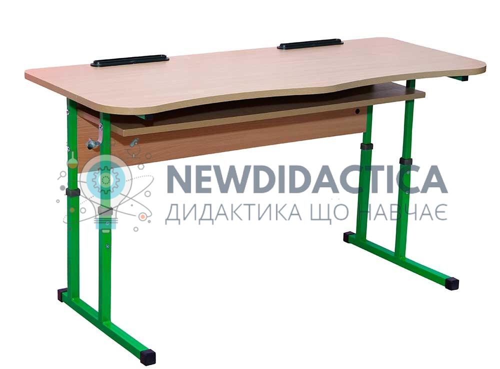 Стіл учнівський 2-місний антисколіозний з полицею, регулюється на ростові групи № 4-6