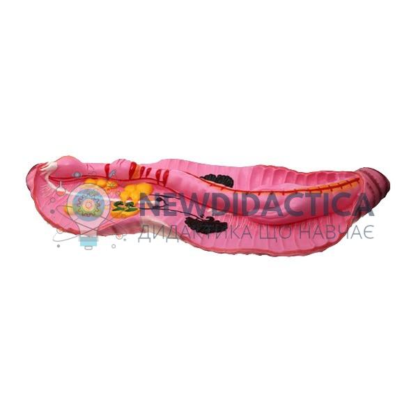 Використовується модель «Дощовий черв’як» в кабінеті біології загальноосвітнього навчального закладу під час вивчення розділу «Тварини», тема «Тип Кільчасті черви». Модель демонструє зовнішню і внутрішню будову кільчастого черв’яка на прикладі дощового черв’яка. Виготовлена з пластика, забарвлена в яскраві природні кольори, що дає можливість досконально розглянути внутрішню будову органів та систем кільчастих черв’яків. Розміри моделі приблизно 50...60 см.