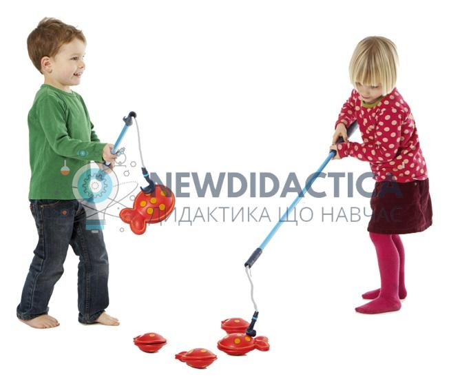 Призначена для розвитку просторової орієнтації, формування навичок ігрової діяльності, гри по черзі, розвитку мовлення та комунікації. З вудкою в руках діти готові до риболовлі. Радість ловити рибу стимулює увагу дітей, рівновагу та координацію рук-очей. Потрібна рухова та розумова концентрація, щоб наблизитися до риби і підчепити її, щоб успішно витягнути на берег. Або рибу витягують на берег або нахиляють “належним чином” за допомогою волосіні та гачка. Залежно від того, яку рибу слід ловити, рибалка повинен використовувати гачок з рибкою (риба та акула) або магніт на гачку (статева риба). Для змагань, групових ігор, фентезі та рольових ігор. Пластиковий стрижень, з ручкою з синтетичного каучуку, гачок оснащений потужним магнітом. Довжина 90 см.