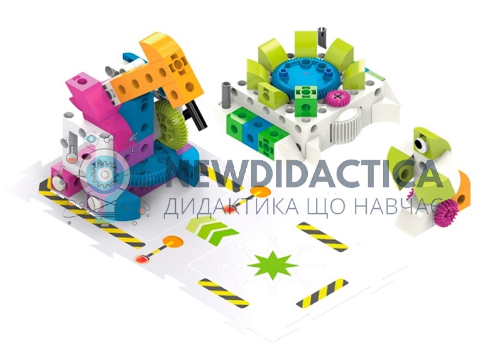 Дидактичний матеріал для моделювання алгоритмів. З цим набором можна вивчити базові концептуальні програми кодування, виконати завдання, представлені у вигляді цікавих історій. Цей комплект допоможе дитині зрозуміти основи та логіку кодирування, не вимагаючи додаткових технологій, таких як планшетів і смартфорнів. Склад: 30 карт з історіями; 120 карточок з котируванням; 1 базовий блок; набір блоків для створення базових моделей. Базовий блок включає картки з кодуванням, які управляють роботами: FWD, BWD, поворот L / R, пауза і обертання. Є звукові та світлові ефекти.