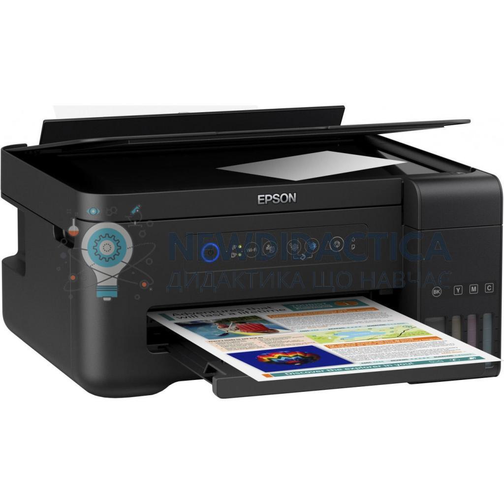 Технічні характеристики та комплектність: - формат пристрою: A4; - технологія друку: струменева; - кольоровість: повнокольоровий; - принтер з ємностями, що заправляються чорнилами; - швидкість чорно-білого друку: 33 ст/хв; - швидкість кольорового друку: 15 ст/хв; - швидкість друку: 10х15 см., 69 сек/фото; - макс. дозвіл, dpi: 5760x1440; - мінімальний обсяг краплі: 3 pl; - тип сканера: планшетний; - тип матриці: CIS; - фронтальнічорнильні ємності , 4 контейнери з чорнилами (чорний, блакитний, пурпурний, жовтий) розраховано на друк до 6000 кольорових і 7500 ч/б документів А4; - провідні інтерфейси: USB /Hi-Speed USB 2.0 - гарантія: від виробника 12 місяців; - комплект фарби для заправки принтера; - папір формату А4, 500листві, 80 г/м3 - 5пачок.