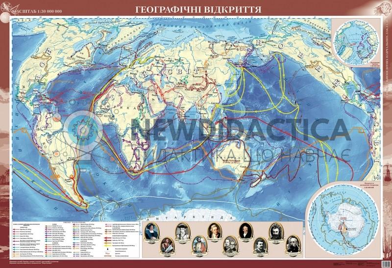 Географічні відкриття (масштаб не менше 1:30 000 000).