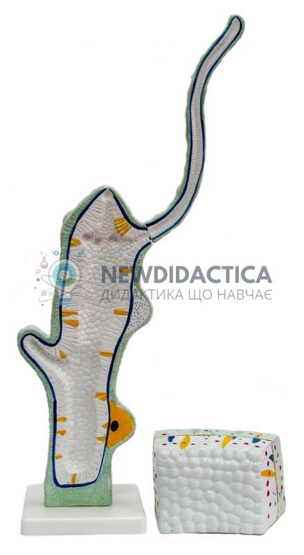Використовується модель «Гідра» в кабінеті біології загальноосвітнього навчального закладу під час вивчення розділу «Тварини», тема «Тип Кишковопорожнинні» і демонструє зовнішню та внутрішню будову прісноводного поліпа – гідри. Модель складається з двох частин: повздовжнього розтину дорослого організму та збільшеного фрагменту частини тіла. Виготовлена з пластика, забарвлена в природні кольори та встановлена на підставки. Розмір моделі приблизно 20...40 см.