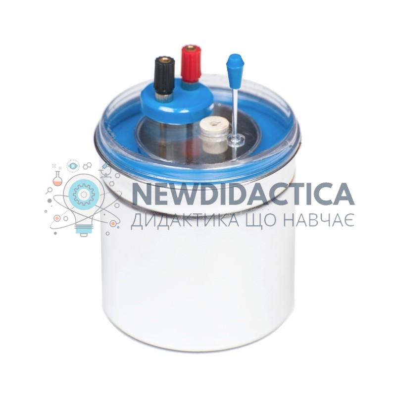 Прилад складається: зовнішній стакан(розмірами не менше 140х105 мм) - 1 шт.; внутрішній стакан (розмірами не менше 70х60 мм, об"єм - 200мл) - 1 шт.; кришка з вмонтованими контактами для вмикання в електричне коло,отвором для термометра - 1 шт.; колодка із спіраллю - 1 шт.; мішалка - 1шт. Вмонтована спіраль забезпечує автономне нагрівання рідини у внутрішній посудині калориметра. між внутрішнім і зовнішнім стаканом розміщена теплоізолююча речовина, яка запобігає втратам та обміну тепловою енергією з навколишнім середовищем. Внутрішній стакан виготовлений з алюмінію. Технічні характеристики: габаритні розміри: 105х105х170мм; маса: 0,2кг. живлення спіралі: 6В, 2 А.