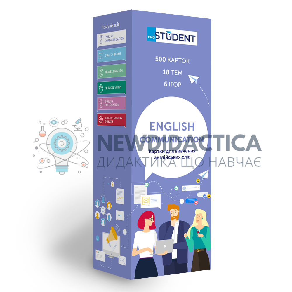Formal & Informal Communication - набір карток для розвитку комунікативних навиків. У цьому наборі ви знайдете англійські слова та вирази для формального спілкування та їхні відповідники для неформального. Набір карток для тих, хто хоче впевнено розмовляти англійською у будь-якій сфері та відчувати різницю значень слів для різних стилів. 5 причин обрати картки від English Student: ● Вивчай! Нові слова відповідно до свого рівня та середовища застосування ● Запам’ятовуй! 95% інформації методом інтервальних повторень ● Розвивай! Пам’ять за допомогою регулярного повторення ● Практикуй! Розмовну англійську під час гри в настільні ігри ● Перевіряй! Картками знання дітей або студентів До набору входить: ● 500 карток із англійськими словами ● коробка для навчання методом інтервальних повторень ● дорожній футляр для зручного користування ● збірка ігор для інтерактивного навчання