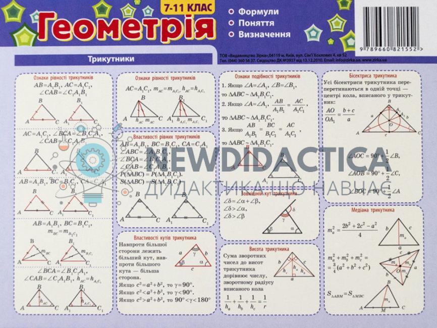 Картонка-підказка. Геометрія. 7-11 класи