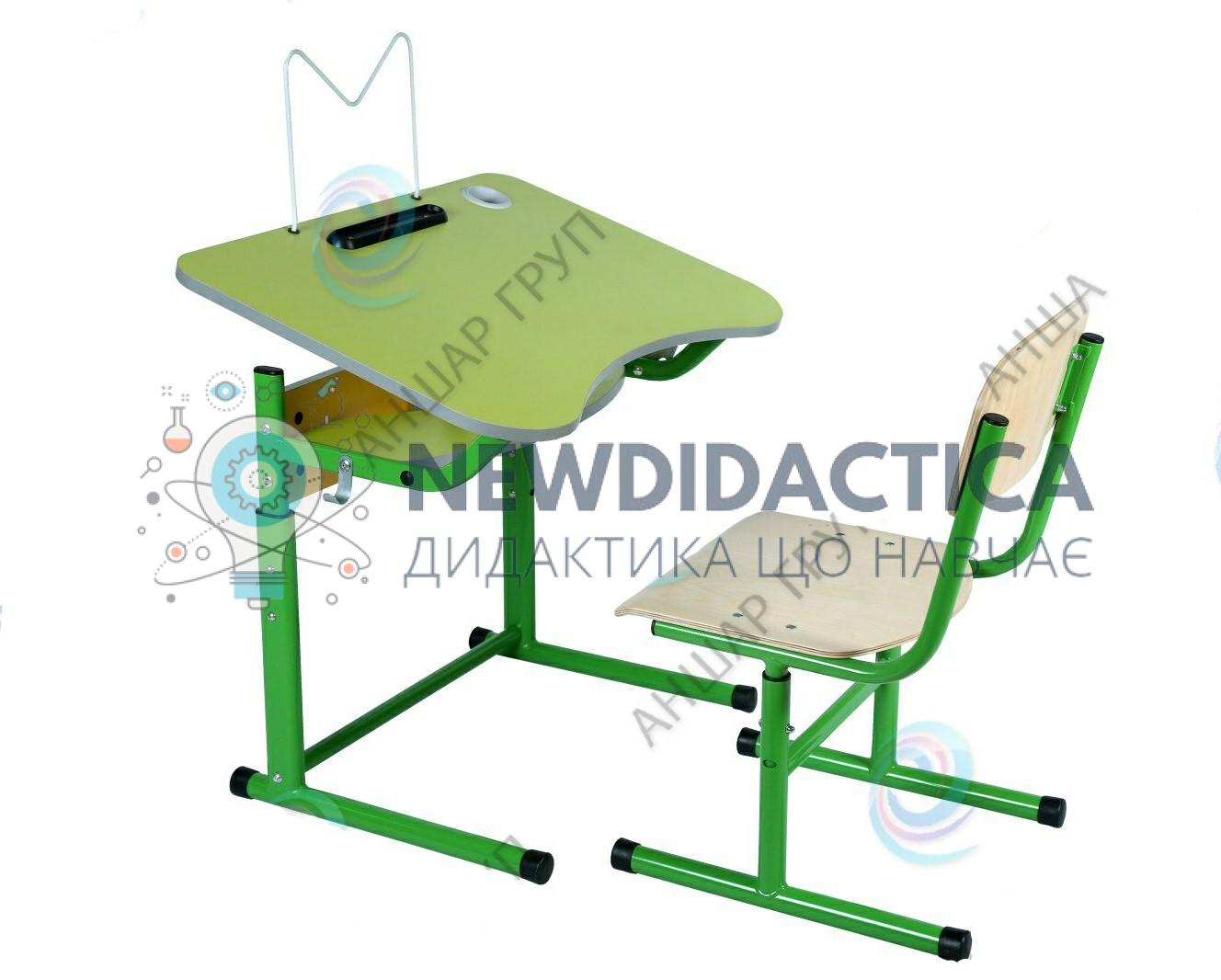 Комплект cтіл учнівський 1-місний з регулюванням кута нахилу стільниці та полицею, ростова група №3-6 + cтілець Т-подібний регульований по висоті № 3-6
