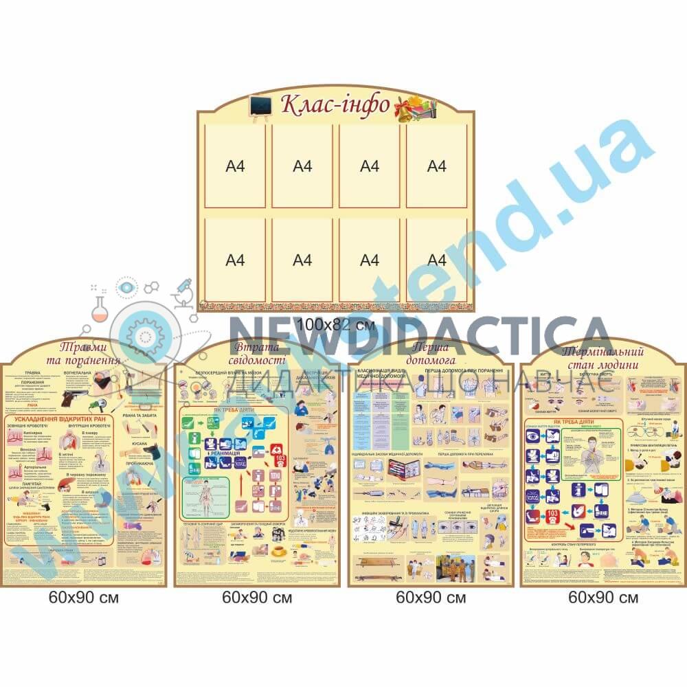 Комплект медичних стендів: Клас-інфо Травми та поранення Втрата свідомості Перша допомога Термінальний стан людини