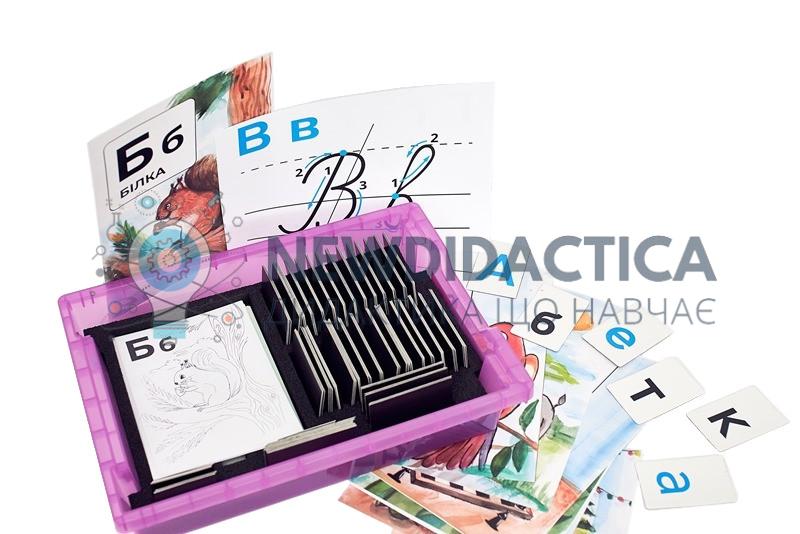 • каса букв: не менше ніж 1 картка кожної великої літери та 3 картки кожної малих літер (найбільш уживаніших по 5 літер). Розміри кожної картки 6х9 см. Матеріал - целюлозний картон щільністю 300 гр/м2 на магнітній основі товщиною 4 мм. Кількість - не менше ніж 177 од.;