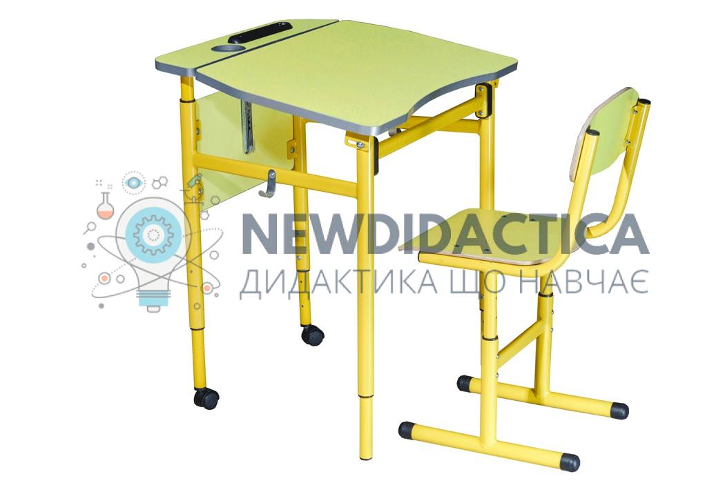 Комплект парта одномісна 6-кутна, мобільна та стілець Т-подібни на круглій трубі учнівські №3-5
