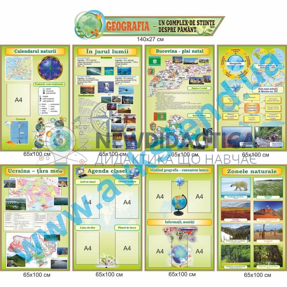 Комплект стендів для кабінету географії румунською мовою