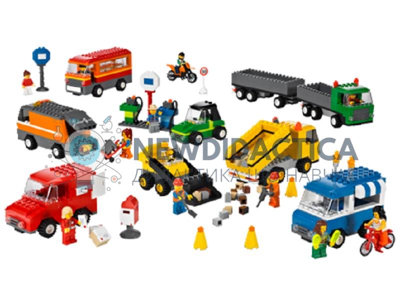Набір для вивчення різноманіття транспортних засобів, їх функцій і принципу роботи. Ви зможете зібрати автобус, сміттєвоз, фронтальний навантажувач, вантажівку з причепом або фургон з морозивом. Містить 934 деталі, п’ять двосторонніх карток з ідеями збірки. Набори, засновані на цеглинках LEGO® System, забезпечують розвиток дрібної моторики в роботі з дітьми дошкільного віку. Містить методичні матеріали для використання в освітньому процесі.