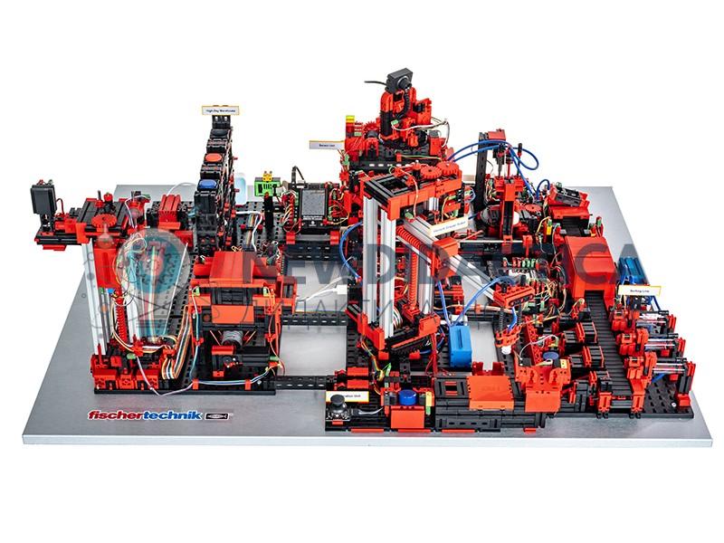 Навчальна модель використовуються для вивчення, розуміння і застосування навичок галузі Індустрія в професійно-технічних навчальних закладах і навчанні, а також для досліджень, викладання та розвитку в університетах, в компаніях і ІТ-кафедрах. Модель імітує процеси замовлення сировини, виробництва і доставки в готових виробів і контроль всіх цих процесів через мережу інтернет.До складу навчальної моделі входять: автоматизований багаторівневий склад, вакуумний маніпулятор, мультіпроцесінгова станція з піччю, сортувальна станція з виявленням квітів заготовок, екологічний датчик і поворотна камера, методичні матеріали для використання в освітньому процесі. Після того, як замовлення розміщене, заготовки проходять через відповідні фабричні модулі, і поточний стан відразу відображається на приладовій панелі. Інтегрований датчик навколишнього середовища повідомляє про значення температури, вологості, тиску повітря і якості повітря. Камера бачить всю систему рухаючись по вертикальній і горизонтальній осях і тому може бути використана для віддаленого веб обслуговування. Заготовки відстежуються за допомогою технології NFC (Near Field Communication): Кожній заготівлі присвоюється унікальний ідентифікаційний номер (ID). Це забезпечує можливість відстеження поточного стану заготовок в процесі обробки.
