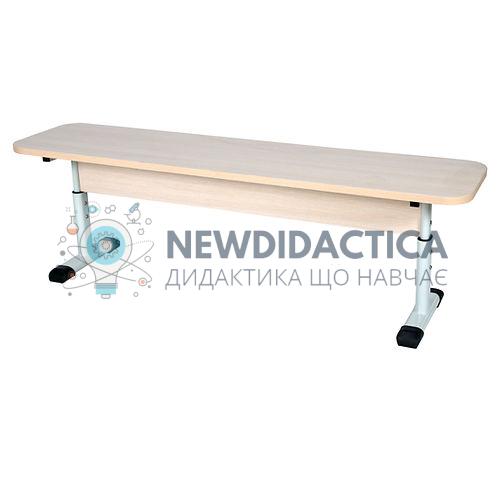 Регулювання висоти лави здійснюється за допомогою гвинтів по отворах каркасу і ніжки, між якими встановлена пластикова перехідна втулка. На торцях каркасу закріплені пластикові наконечники, які запобігають травмуванню учнів та пошкодженню підлоги.