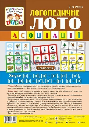 Логопедичне лото : Асоціації : у 4 ч.: комплект 4 : Звуки [л]-[л], [л]-[л’], [л’]-[л’], [р]-[р], [р]-[р’], [р’]-[р’], [р]-[л]