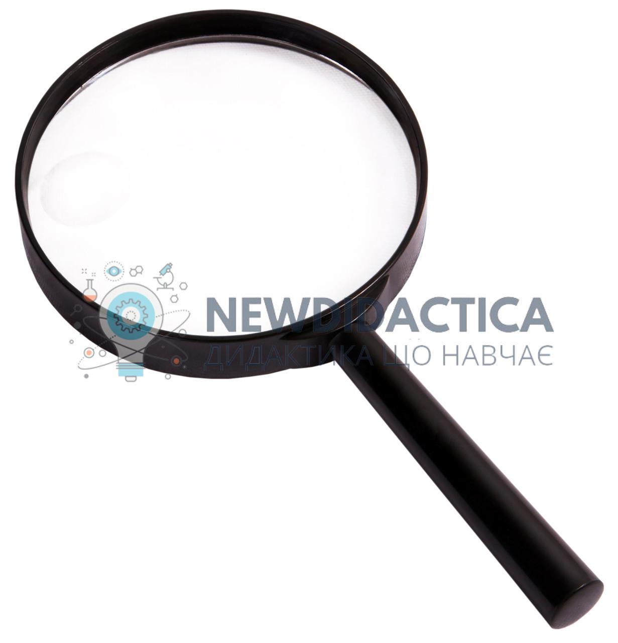 Використовується лупа шкільна в кабінеті біології та географії загальноосвітнього навчального закладу під час проведення лабораторних робіт. Лупа призначена для спостереження невеликих об'єктів, деталі яких неможливо розглянути неозброєним оком. Виготовлена зі скла в пластмасовій оправі з ручкою. Збільшення у 5 разів Діаметр скла 50мм Призначення: для школярів та дітей від 5 років