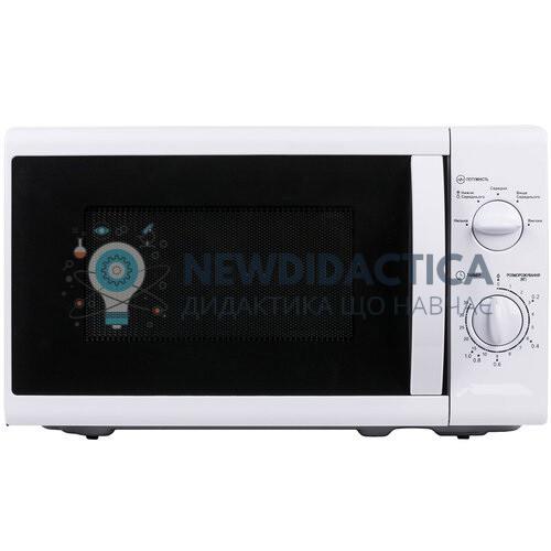 Мікрохвильова пічка виготовлена з міцного пластикового корпусу. Укомплектована двома механічними перемикачами для регульовання тривалості нагріву і потужності (9 режимів). Про закінчення приготування/підігріву страви сповіщає звуковий сигнал, також доступна опція швидкого розморожування. Об'єм: 20 л. Спосіб відкриття: ручка Діаметр тарілки: 25 см Внутрішне покриття: емаль Тип пічки: соло.