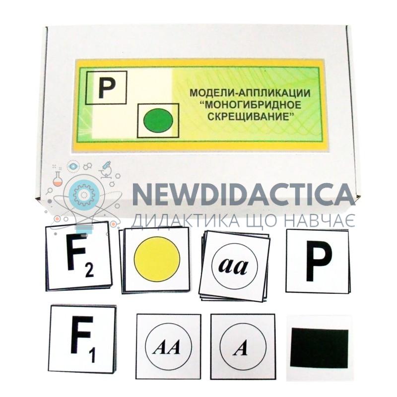 Використовується модель-аплікація «Моногібридне схрещування» в кабінеті біології загальноосвітнього навчального закладу під час вивчення розділу «Загальна біологія», теми «Генетика». Модель-аплікація демонструє процес перехресту хромосом (кросинговер), містить 20 карток з зображенням генотипів та фенотипів насіння гороху, що відрізняються за однією ознакою – кольором насіння, а також карток з зображенням домінантних та рецесивних гамет та знаків схрещування. Картки ламіновані та оснащені магнітним кріпленням, що дозволяє демонструвати посібник на металевій класній дошці без застосування додаткового кріплення.