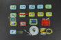 Жовта кнопка x1, Датчик вологості ґрунту x1, Датчик світла x1, Модуль вентилятора x1, Датчик температури x1, Надяскравий світлодіод x1, Модуль зумера x1, Логічний модуль - НЕ x1, Логічний модуль - І x1, Логічний модуль - АБО x1, Пороговий модуль x1, дисплейний модуль x1, материнська плата-1IO x1, тримач для батареї 3xAAA x1, кабель 5 см x 5, кабель 10 см x10, кабель 20 см x 5, пакет із липучкою x1, пакет гвинтів x1, кабель micro USB x1.