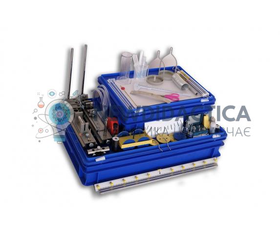 Використовується в закладах освіти для проведення лабораторних робіт з механіки. Завдяки даному набору можна проводити експерименти що стосуються вимірювання фізичних величин: Вимірювання довжини за допомоги вимірювальної рулетки і штангенциркуля. Об'єм твердих і рідких матеріалів. Об'єм газів. Вимір часу. Маса та одиниці маси. Щільність твердих тіл. Щільність рідин. Визначення щільності рідин (U- подібний метод). Сила: Сила тяжіння. Вимірювання сили. Розтягування пружини - Закон Гука. Напрямок сили і точка прикладання сили. Складання сил - паралелограм сил. Склад трьох сил. Похила площина. Розкладання сил на похилій площині. Сила тертя. Визначення коефіцієнта тертя. Прості механізми: Двосторонній важіль. Модель важільних терез. Односторонній важіль. Нерухомий ролик. Рухомий ролик. Проста система підйомних блоків. Складна система підйомних блоків. Механічна робота. Робота на похилій площині. Стійкість. Робота при перекиданні. Гідростатика: Сполучені посудини. Вплив тиску повітря. Плавучість. Закон Архімеда. Вантажопідйомність судна. Модель гідростатичних ваг. Гідростатичний тиск. Капілярність. Склад набору: - легкорухомий візок - 1шт; - вимірювальна стрічка, L \= 300см - 1шт; - чаша для ваг з металевим тримачем - 2шт; - покажчик для важеля ваг - 1шт; - шкала градуйована - 1шт; - ковзаюча опора для важеля ваг - 1шт; - свинцевий дріб, 50г - 1шт; - штангенциркуль пластиковий - 1шт; - стакан 100мл, пластиковий - 1шт; - мірний циліндр 100мл, пластиковий - 1шт; - електроди, що занурюються, набір - 1шт; - манометрична трубка акрилова, D \= 8мм, L \= 200мм - 2шт; - акрилова трубка, D \= 20мм, L \= 120мм - 1шт; - пробка силіконова, 12.5/18/27мм, 1 отвір – 1шт; - пробірка, 12 x 100мм - 1шт; - важок з прорізом, 50г - 4шт; - важок з прорізом , 10г - 4шт; - тримач для важків, 10г - 2шт; - комплект , 1 ... 50г - 1шт; - опорний стрижень, круглий, L \= 500мм, D \= 10мм - 2шт; - акрилова трубка, D \= 8мм, L \= 80мм - 1шт; - пустотілий блок (Архімеда), розмір приблизно 50x20x20мм , для простих розрахунків об'єму - 1шт; - алюмінієвий блок - 1шт; - сталевий блок з гачком, великий - 1шт; - сталевий блок з гачком, малий - 1шт; - циліндрична пружина 3Н/м, D \= 35мм, приблизно - 1шт; - циліндрична пружина 20Н/м, D \= 12мм, приблизно - 1шт; - важіль балансу ваг, L \= 420мм Виготовлений з алюмінію, має пластикові захисні елементи з виступами для кріплення чаш для ваг, або важків, має 2 отвори для стійкої і нестійкої рівноваги, різьбовий отвір для укажчика - 2шт; - плоска пружина, сталева, 0.4мм, L \= 165мм 1x P7422 - 9A Капілярні трубки, набір з 3шт - 1шт; - шківи, набір з 4шт, пластикові, з глибокою канавкою – 1; - трубка 100см, пластикова, прозора - 1шт; - трубка 16см, пластикова, прозора - 1шт; - динамометр 2Н, прозорий Градуювання шкали 0,02Н, корпус виготовлений із прозорої акрилової трубки, щоб бачити пружину; має налаштування на нуль; - захист від перевантаження щоб уникнути пошкодження пружини - 2; - ложемент-укладка для набору - 1шт; - пластикова коробка, з кришкою - 1шт; - методичне забезпечення: керівництво з проведення всіх експериментів українською мовою -1шт. Штатив універсальний Склад та конструкція приладу: - опорний палець - 2шт; - тримач для динамометрів і пробірок - 1шт; - настільний затискач - 1шт; - напрямна рейка, 300мм - 2шт; - з'єднувач рейки - 1шт; - універсальний затискач - 3шт; - круглий затискач - 1шт; - ковзна опора з гвинтом для регуляції - 1шт; - ковзна опора для екранів, пружин і покажчиків - 1шт; - опорний стрижень, круглий довжи