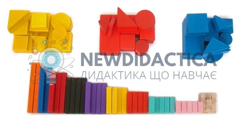 Набір лічильного матеріалу складається з рахункових паличок Кюїзенера та блоків Дьенеша. Усі складові набору виготовлені з міцного і якісно обробленого бука, пофарбовані фарбою на водній основі. Кількість паличок Кюїзенера у наборі 116, розмір деталей – від 1 до 10 см. Блоки Дьенеша являють собою набір з 48 фігур, кожна з яких є унікальною за кольором, розміром, формою та товщиною. За допомогою набору лічильного матеріалу можна вивчати характеристики об'єктів, вивчати нумерацію та проводити підрахунки в межах 100. Кількість лічильного матеріалу розрахована на роботу в групах та дозволяє одночасно працювати 4–10 учням.